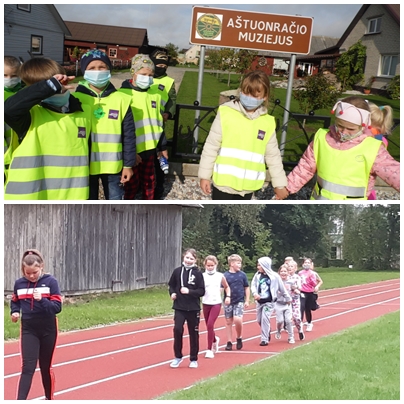 Puiki mūsų miestelio gamtinė aplinka, istorinis paveldas, saulėtas ruduo leido pasinaudoti sveikatinimosi gamtoje galimybėmis. Siekiant mažesnio kontakto, pertraukų metu vaikštinėjome gimnazijos parkelyje. Daug žingsnelių padarėme žingsniuodami ir mūsų gimnazijos stadiono bėgimo takeliais.