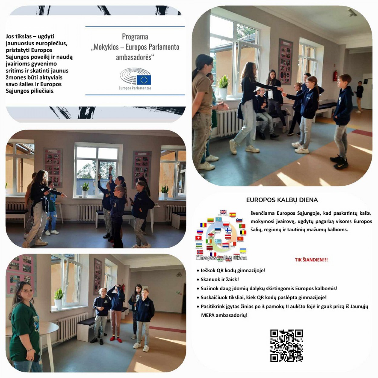 Gimnazijoje vykdant projektą „Mokyklos – Europos Parlamento ambasadorės“ MEPA jaunieji ambasadoriai organizavo protmūšį „Europos kalbų diena“ 5–8, I g klasių mokiniams.