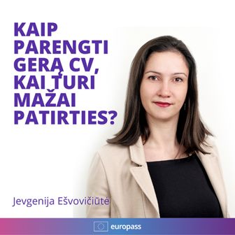Jaunimas dažnai susiduria su klausimu, kaip parengti gerą CV, kai neturi arba turi mažai patirties. Šiais metais projektas „Europass“ pasiūlė mokykloms galimybę padėti mokiniams šioje srityje ir suteikti daugiau žinių. Todėl sausio 29 dieną III-IV g kl. mokiniai dalyvavo nuotoliniame užsiėmime ir mokėsi kurti CV.