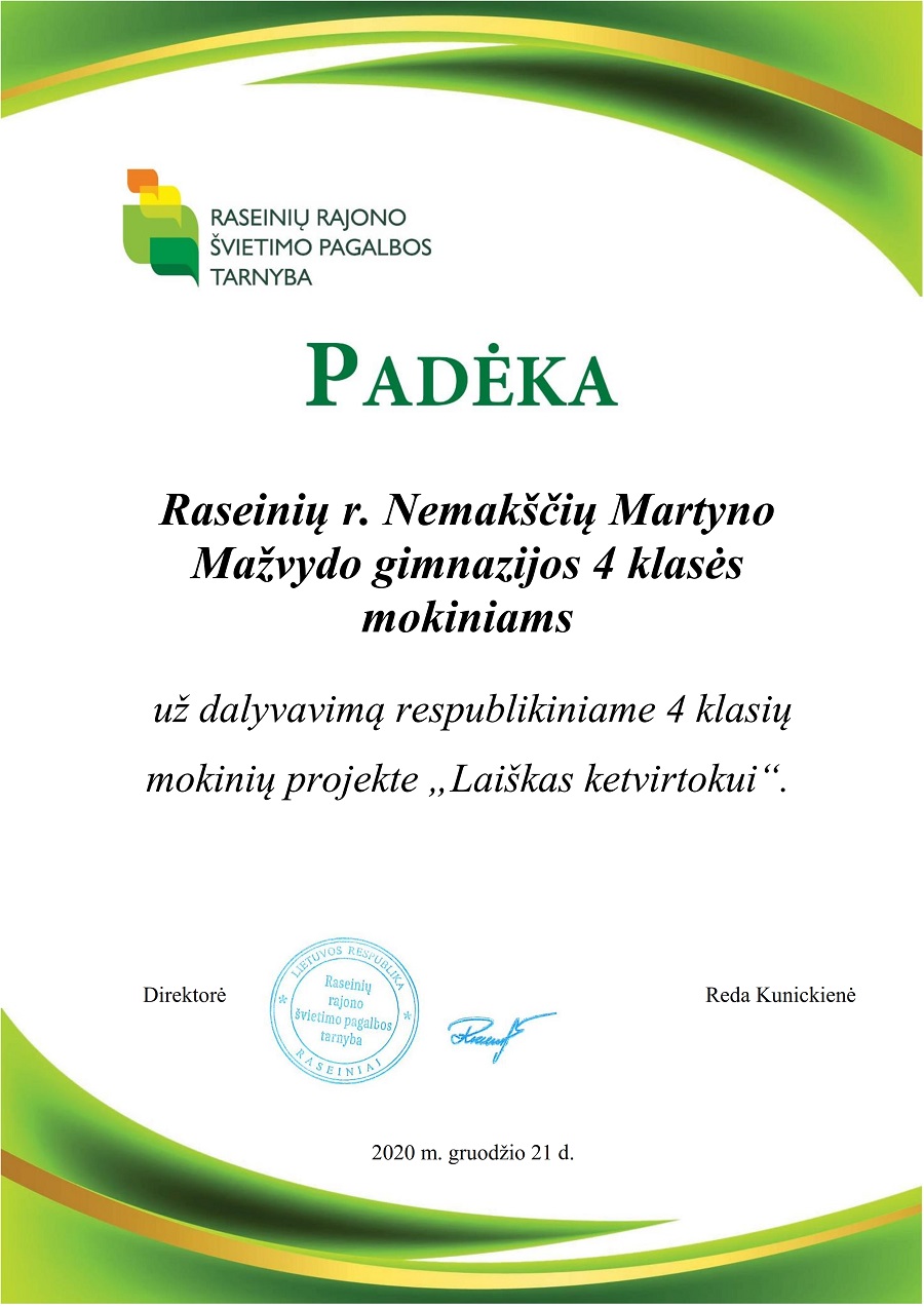 Spalio - gruodžio mėn. vyko respublikinis 4 klasių mokinių projektas „Laiškas ketvirtokui“, kuriame dalyvavo visi ketvirtos klasės mokiniai. Šio projekto tikslas – ugdyti kūrybišką asmenybę.