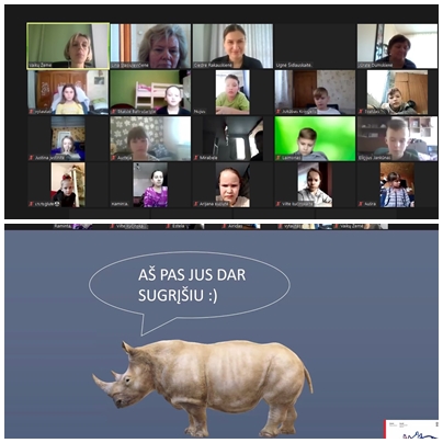Rašytoja Giedrė Rakauskienė pristatė savo knygą ,,Paskutinis pasaulyje baltasis raganosis“ ir papasakojo raganosio Sudan istoriją. Virtualioje kelionėje vaikai pamatė matytų ir nematytų gyvūnų, sužinojo įdomybių apie Afrikos gamtą, gyvūniją ir nykstančias jos rūšis.