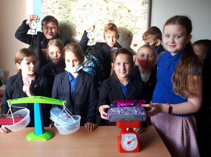 Matematikos pamokų metu mokiniai atliko praktinį daiktų matavimą sąvaržėlėmis, pieštukais, sprindžiais, sieksniais, žingsniais, metrais. Grupėse labai kruopščiai vykdė matavimus, kiek mililitrų skysčio yra kiekviename inde. Tyrimų duomenis fiksavo duomenų lapuose, apibendrino, darė išvadas. Masės matavimo vienetų mokėmės sverdami įvairius daiktus. Pasvėrę savo kuprines, apskaičiavome, koks turėtų būti kuprinės svoris, padarėme išvadas kaip išvengti laikysenos sutrikimų.