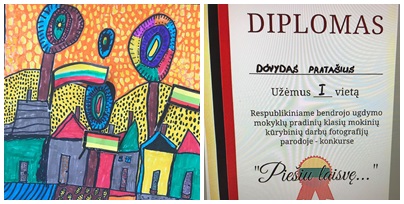 Dovydo darbas užėmė pirmąją vietą 1-2 kl. mokinių darbų grupėje.