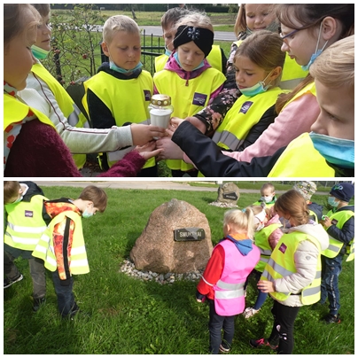 Pirmokai aplankė Išnykusių kaimų skverelį, suskaičiavo paminklus, skaitė išnykusių kaimų pavadinimus.