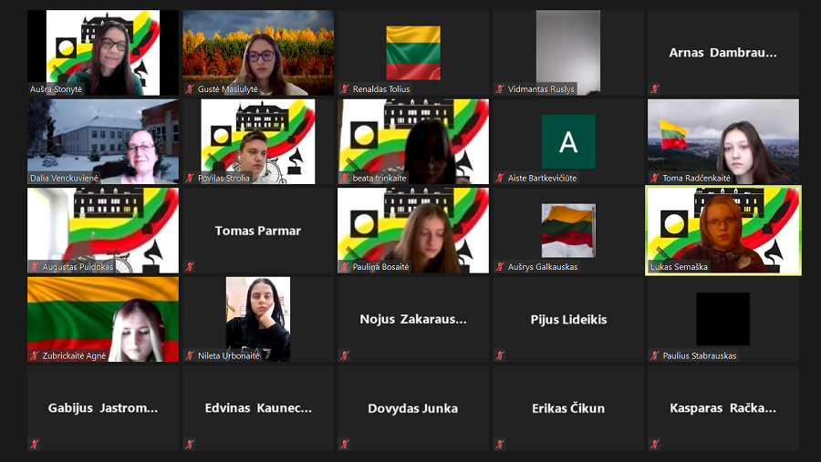 Šiandien I kl, gimnazistai paminėjo Vasario 16-ąją kitaip. Suradome bendraamžių iš Šiaulių St. Šalkauskio gimnazijos ir Vilkaviškio raj. Virbalio pagrindinės mokyklos ir kartu pasidžiaugėme savo krašto įžymiomis vietomis, diskutavome, kaip galima supranti žodį "Laisvė“. Ir vieni, ir kiti (iš viso 68 dalyviai) vieningai nusprendėme, kad turime branginti laisvę, išlikti savimi ir daryti sau ir Lietuvai kas yra geriausia. Drauge su 2500 dalyvių iš visos Lietuvos stebėjome didžiausią bendradarbiavimo pamoką Vasario 16-ajai paminėti. Labai patiko sužinoti apie laisvą rašymą, kaip kurti įvairius žaidimus, panaudojant informacines technologijas, ir išgirdome gyvai atliekamą dainą apie laisvę.